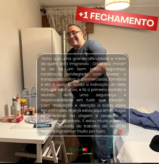"Acho que uma grande dificuldade e medo de quem está imigrando: Onde vou morar? Se vai ter um bom preço, segurança, localização privilegiada com acesso a transporte público, supermercados, farmácia e etc. E quando recebi a indicação da Hello Portugal Relocation, e fiz o primeiro contato e reunião, senti uma segurança e responsabilidade em tudo que falaram...Com dedicação e atenção a todas essas necessidades. Hoje já estou aqui em Portugal, fui orientado na viagem e recebido de maneira acolhedora...E estou muito satisfeito com o resultado do trabalho da Hello. Só tenho a agradecer muito por tudo."