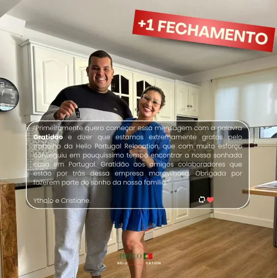 "Quero agradecer os serviços prestados pela Hello Portugal! Não temos palavras para descrever a gratidão que sentimos. Profissionais competentes e dedicados... nos ajudaram desde o começo até depois da entrega das chaves. Sempre prestativos e educados. Indicamos de olhos fechados...agora se tornaram nossos amigos, pessoas que queremos para nossa vida. Obrigada Clóvis e Adriana por nos ajudarem a encontrar o nosso lar em Portugal, do jeitinhos que sempre sonhamos."