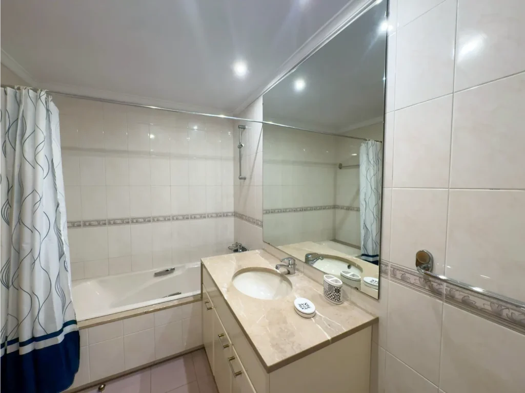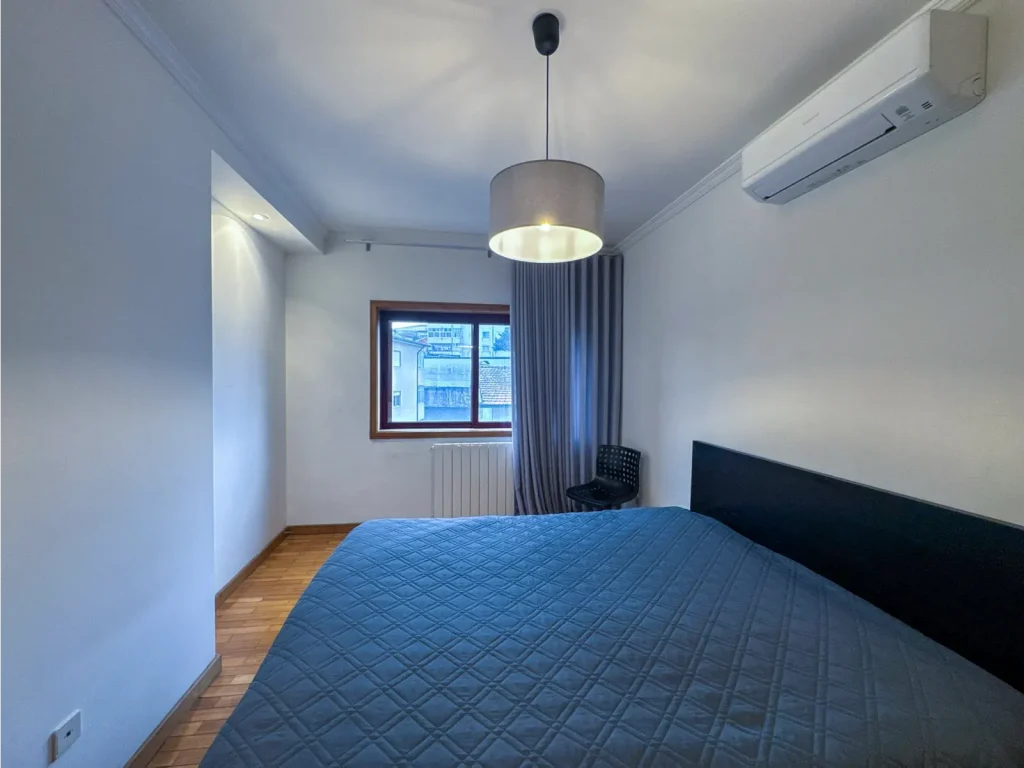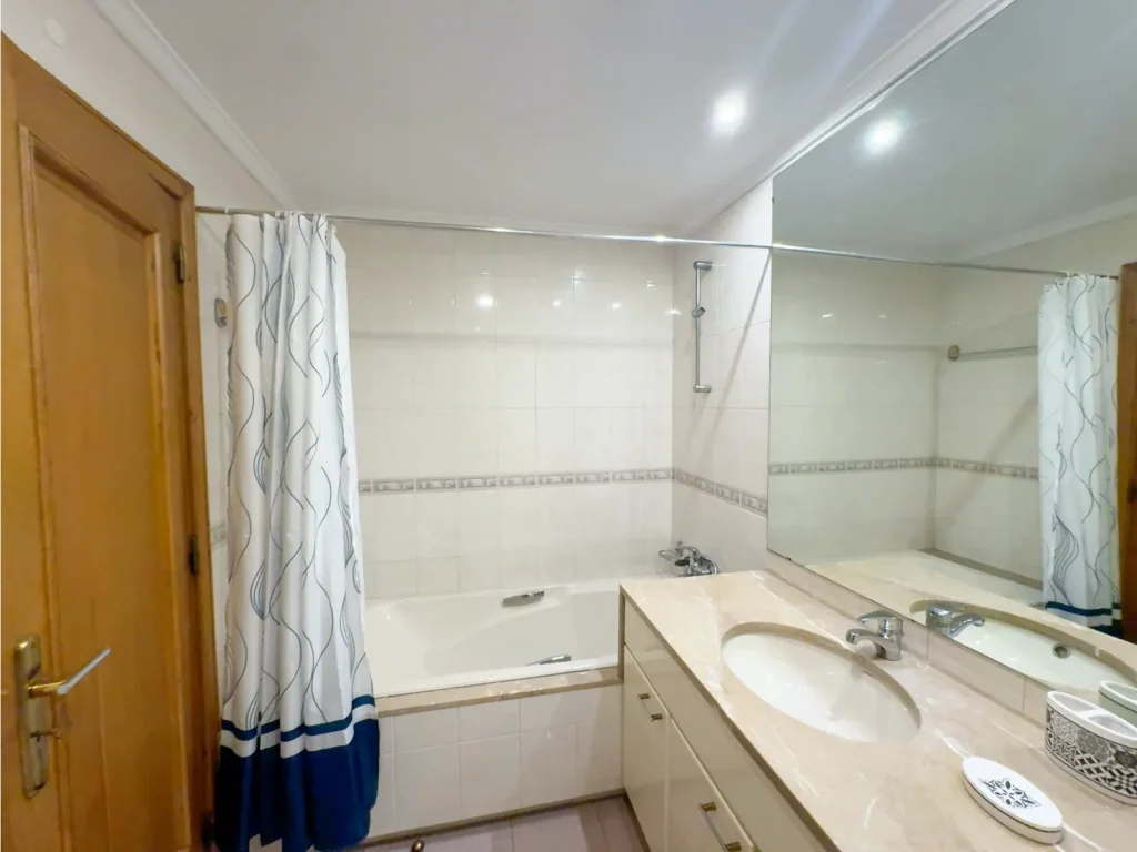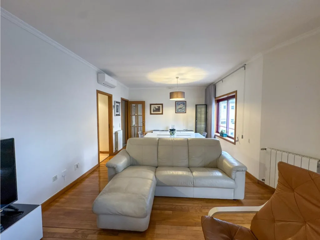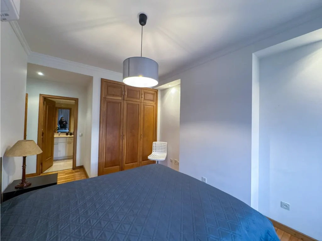 O imóvel dispõe de quartos com roupeiros embutidos, duas casas de banho completas, aquecimento central, ar condicionado e lareira, garantindo conforto em todas as estações do ano. A cozinha encontra-se equipada e funcional, complementada por uma garagem fechada e acesso por elevador, que acrescentam praticidade e segurança ao dia a dia.