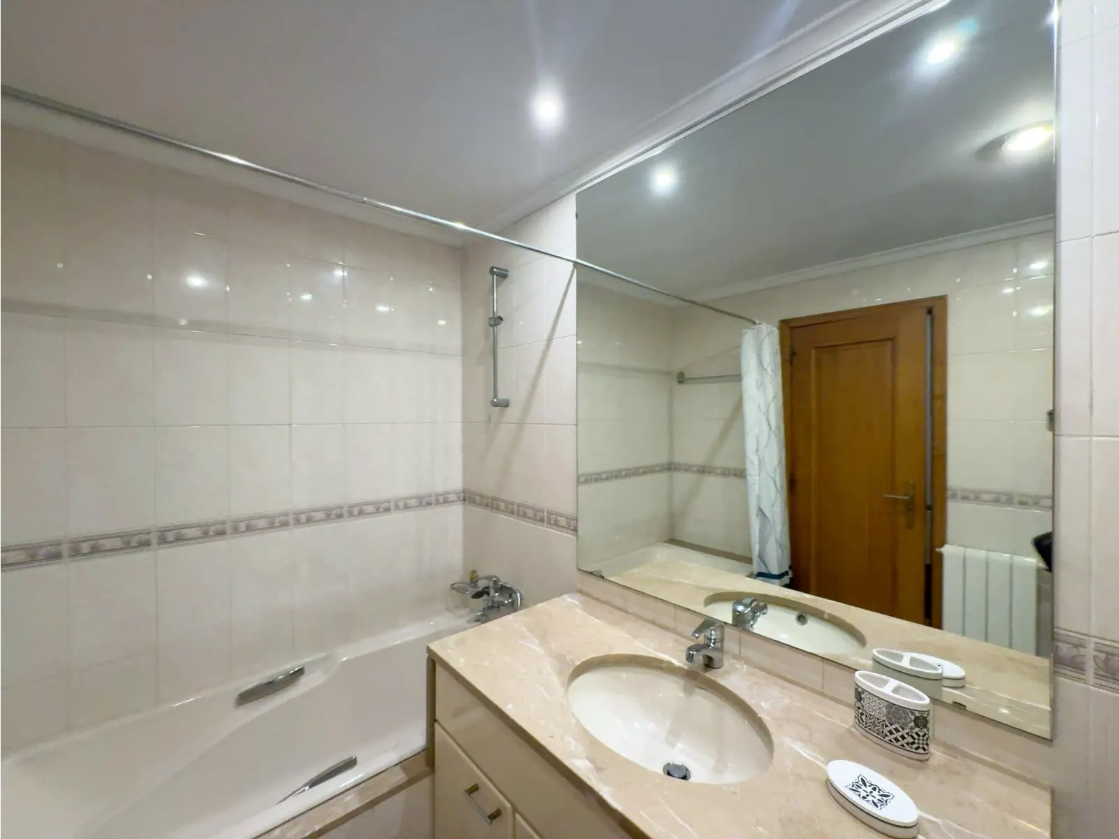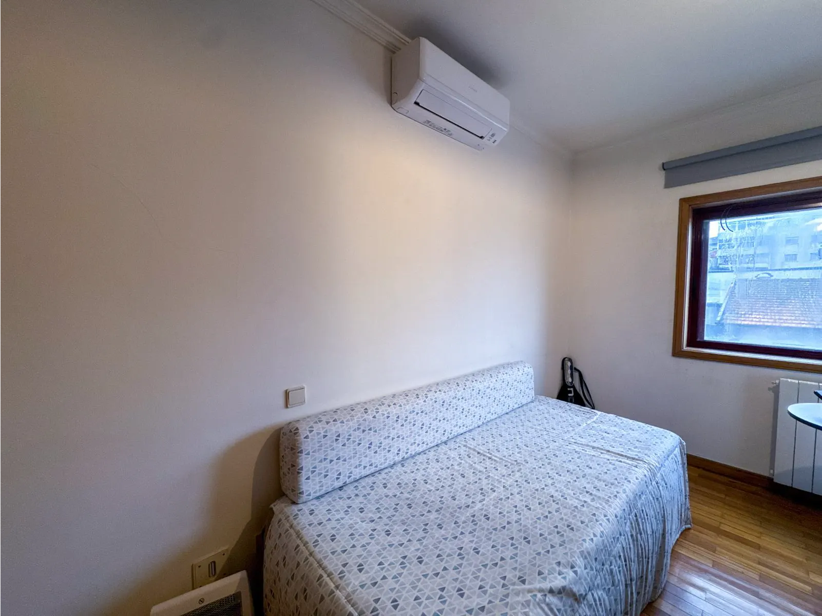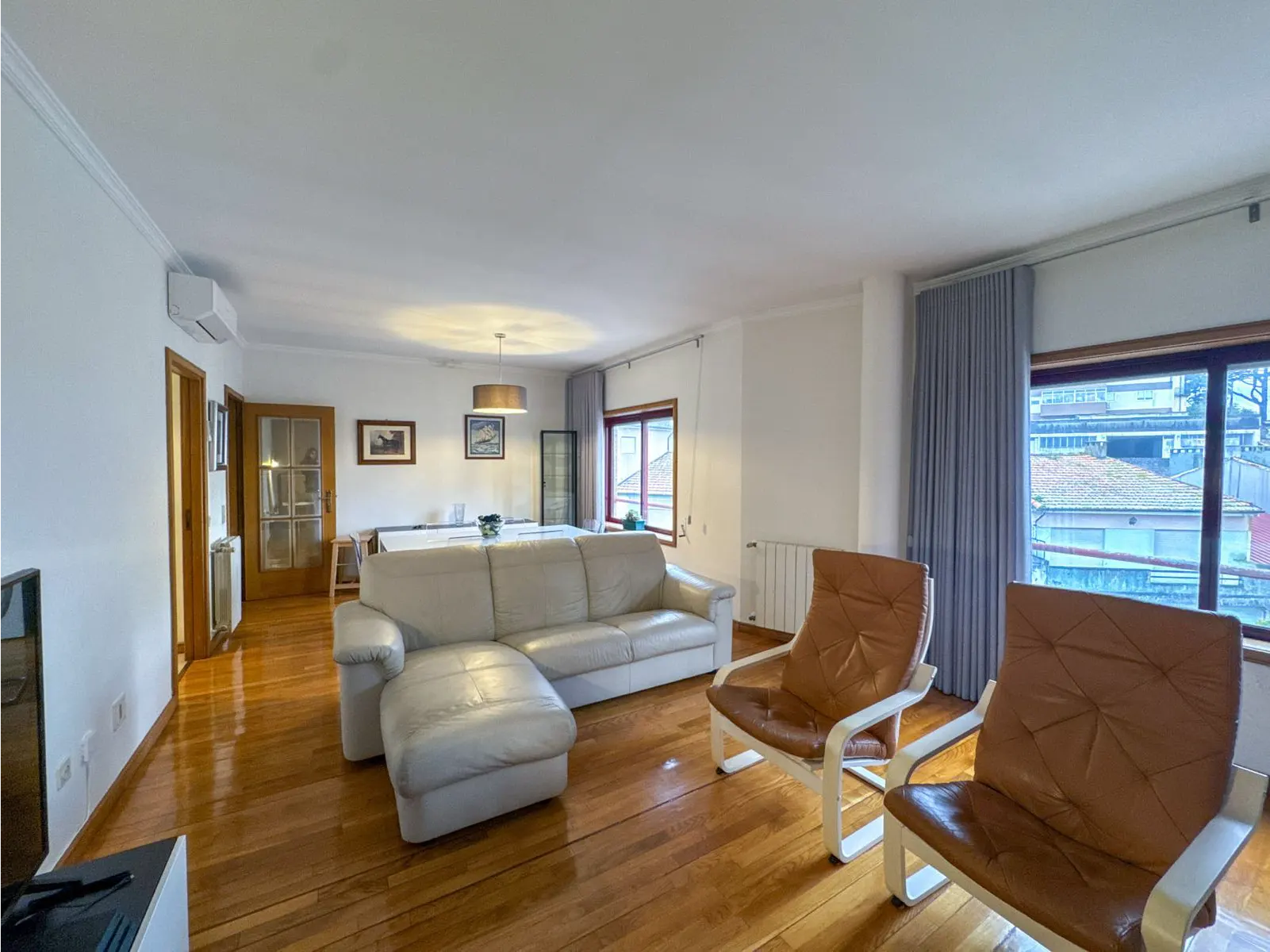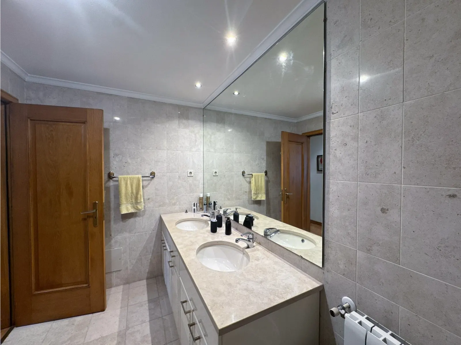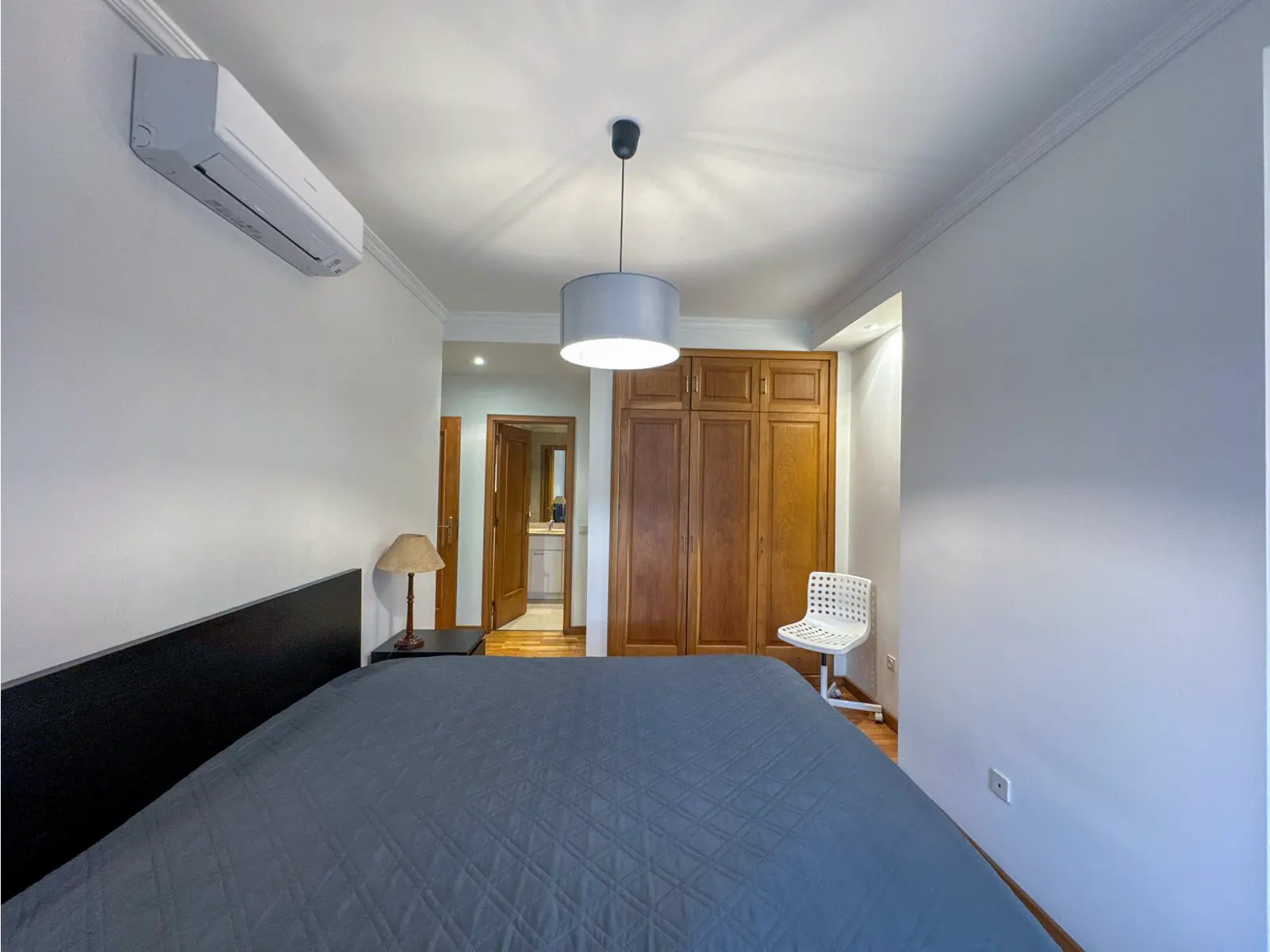 O imóvel dispõe de quartos com roupeiros embutidos, duas casas de banho completas, aquecimento central, ar condicionado e lareira, garantindo conforto em todas as estações do ano. A cozinha encontra-se equipada e funcional, complementada por uma garagem fechada e acesso por elevador, que acrescentam praticidade e segurança ao dia a dia.